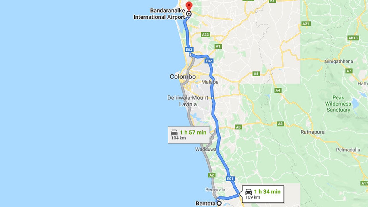 Bentota City to Colombo Airport (CMB) Private Transfer