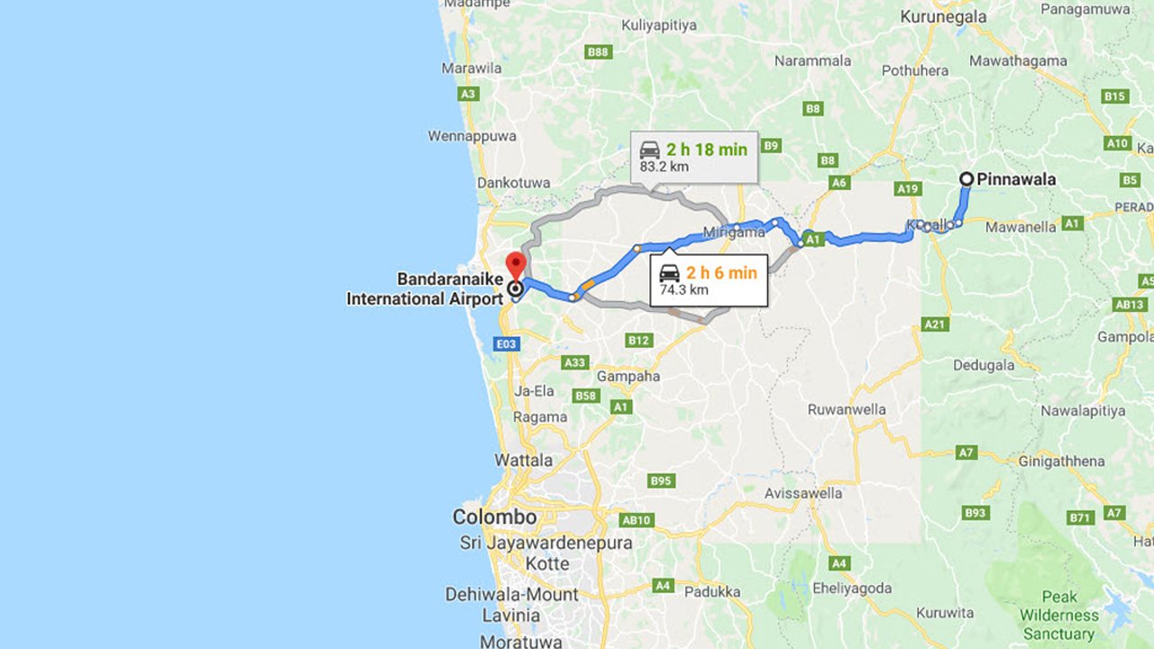 Pinnawala City to Colombo Airport (CMB) Private Transfer