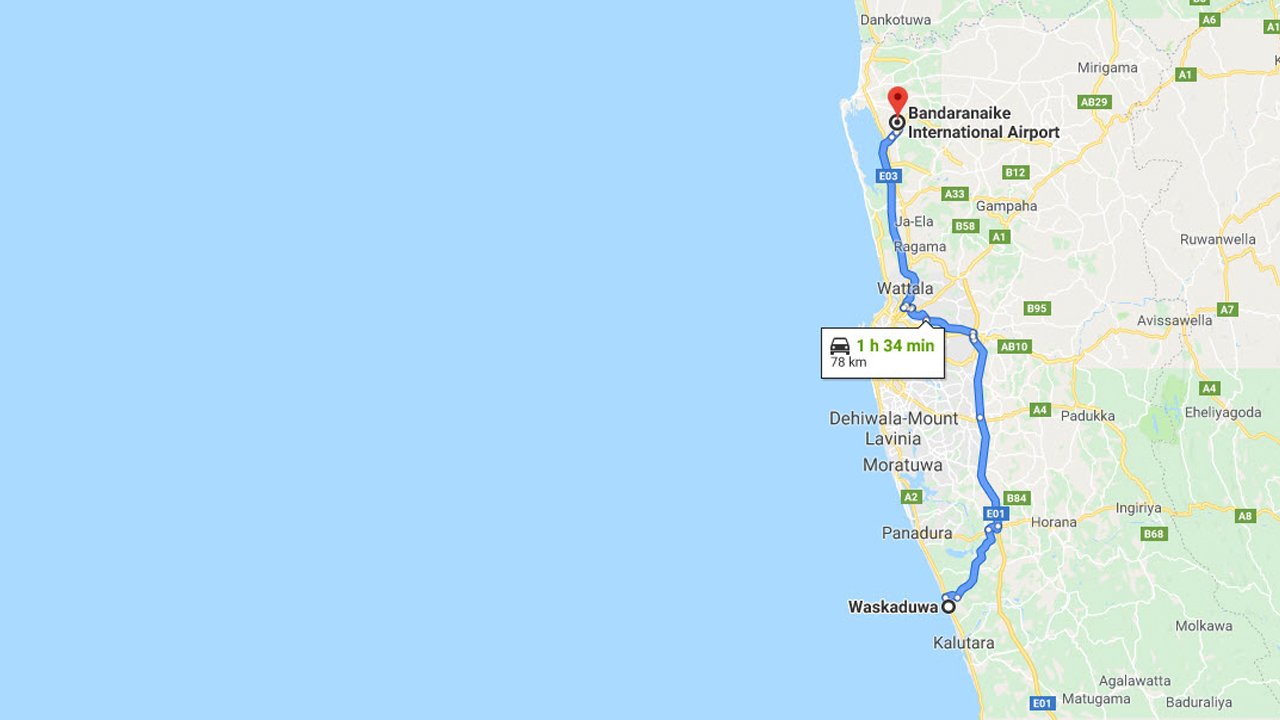 Waskaduwa City to Colombo Airport (CMB) Private Transfer