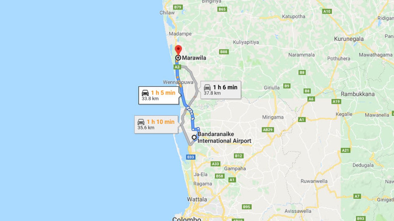Colombo Airport (CMB) to Marawila City Private Transfer
