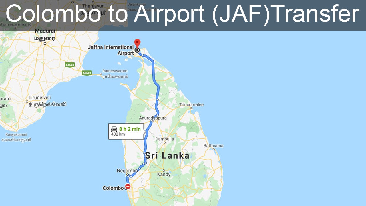 Colombo City to Jaffna Airport (JAF) Private Transfer