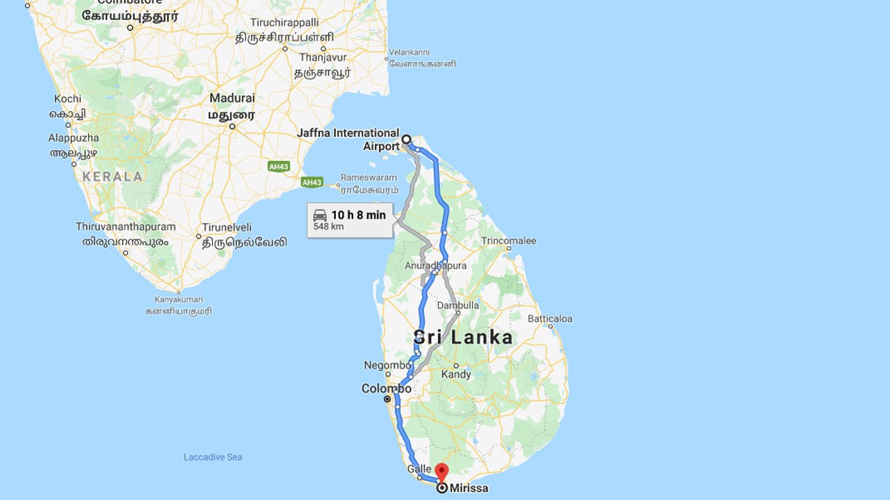 Looking for an Arrival transfer by Taxi, Cab or Car in Sri Lanka between Jaffna International Airport and Mirissa City?