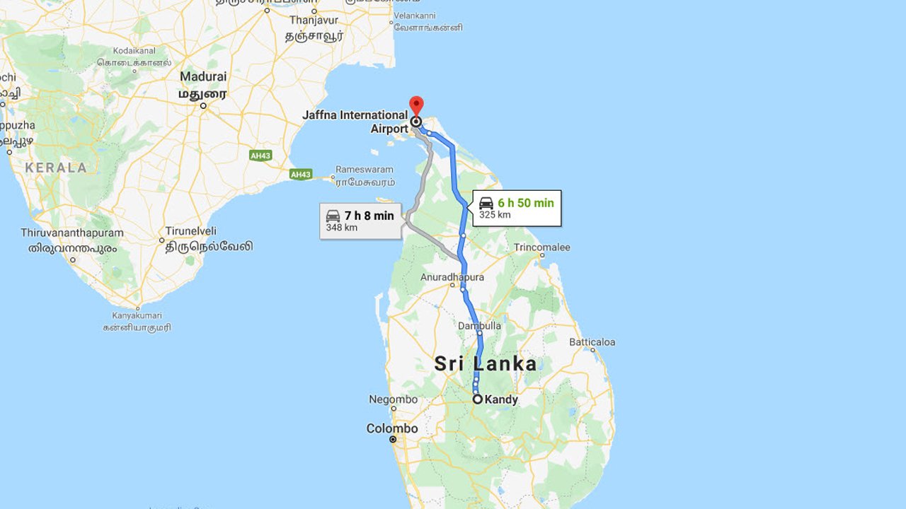 Kandy City to Jaffna Airport (JAF) Private Transfer