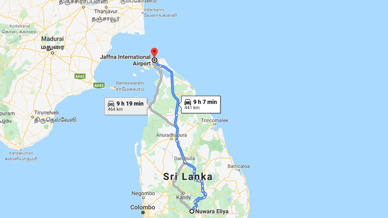 Nuwara Eliya City to Jaffna Airport (JAF) Private Transfer