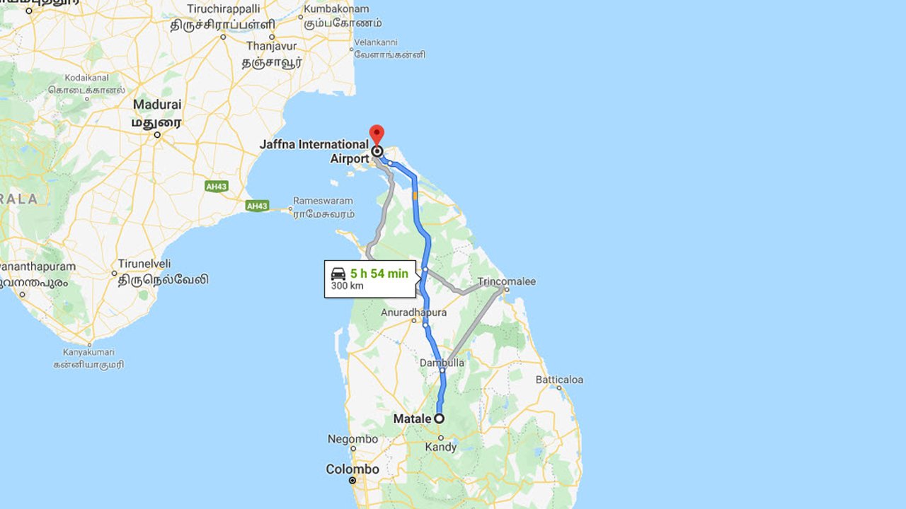Matale City to Jaffna Airport (JAF) Private Transfer