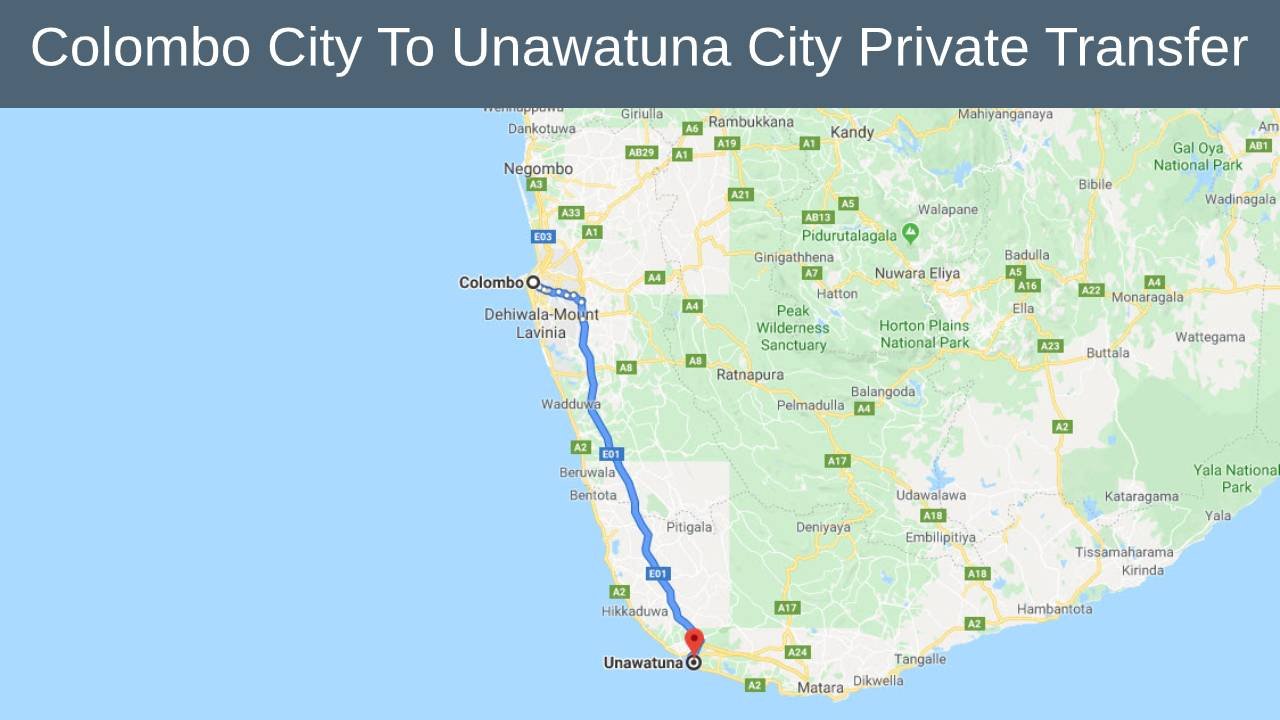 Tourists visiting Sri Lanka can now book or hire private air-conditioned taxi, cab or car from us to travel from Colombo to Unawatuna. Ground Transport between Colombo and Unawatuna and from your Hotel are now also available with the Lowest Price guaranteed.