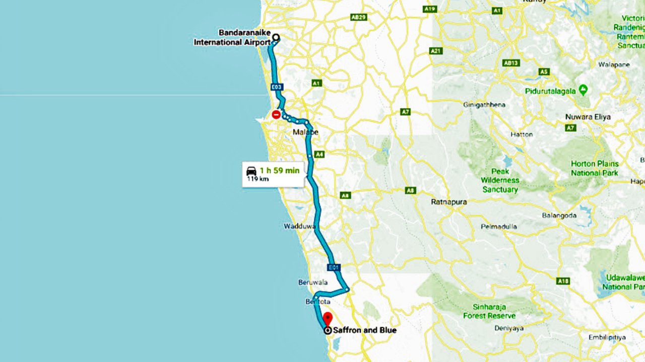 Looking for an Arrival/Departure transfer by Taxi, Cab or Car in Sri Lanka between Colombo Bandaranaike International Airport and Saffron & Blue by Jetwing in Kosgoda?